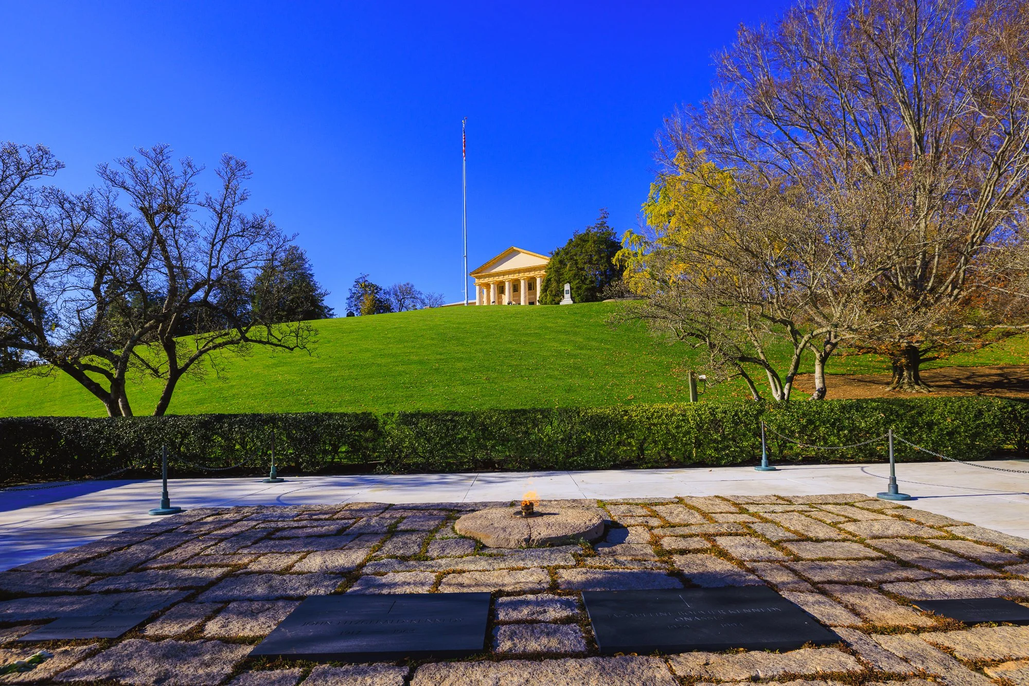 In 1961, U.S. President John F. Kennedy and First Lady Jacqueline Kennedy paid their respects at the Tomb of the Unknown Soldier, accompanied by President Charles de Gaulle. After the 1963 assassination of President Kennedy, Mrs. Kennedy remembered the eternal flame at the Arc de Triomphe and requested that an eternal flame be placed next to her husband’s grave at Arlington National Cemetery in Virginia.