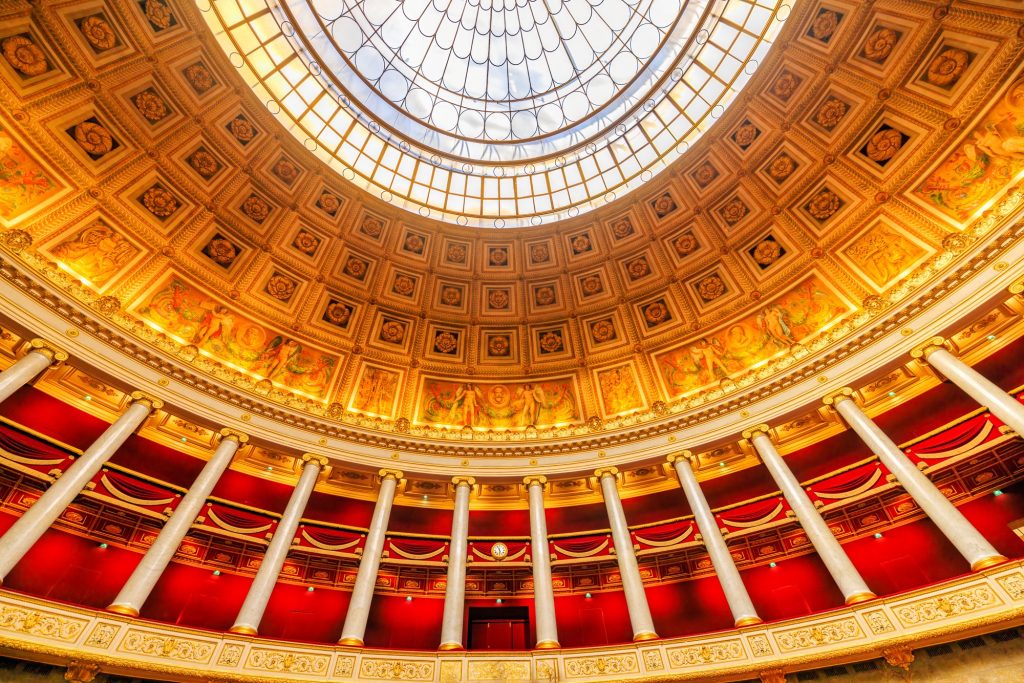 There are 577 députés, each elected by a single-member constituency (at least one per department) through a two-round system; thus, 289 seats are required for a majority. The president of the National Assembly presides over the body. The officeholder is usually a member of the largest party represented, assisted by vice presidents from across the represented political spectrum. The National Assembly’s term is five years; however, the President of France may dissolve the Assembly, thereby calling for new elections, unless it has been dissolved in the preceding twelve months. Following a tradition started by the first National Assembly during the French Revolution, the left-wing parties sit to the left as seen from the president’s seat and the right-wing parties to the right; the seating arrangement thus directly indicates the left–right political spectrum as represented in the Assembly.