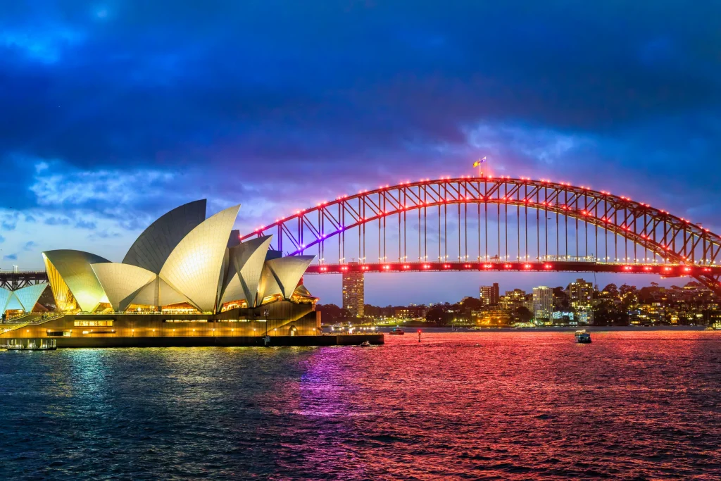 No image of Sydney is more recognizable than the white sails of the Sydney Opera House beside the great steel arch of the Harbour Bridge.