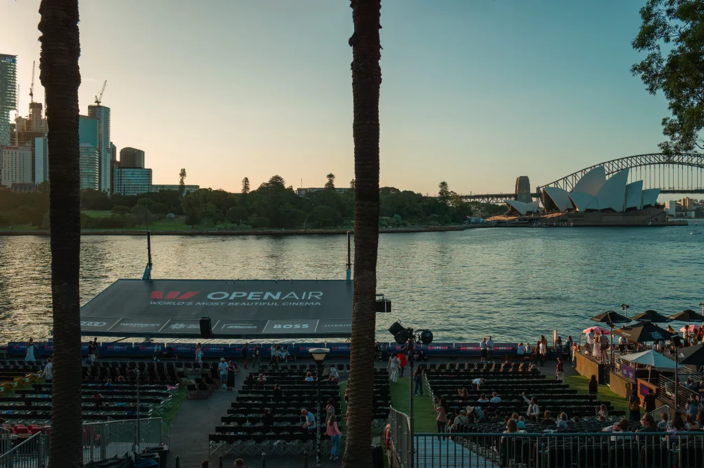 It is hard to imagine a more beautiful place for an outdoor film. As darkness falls, the skyline lights up, ferries continue crossing the water, and the Opera House and Harbour Bridge form part of the backdrop.
