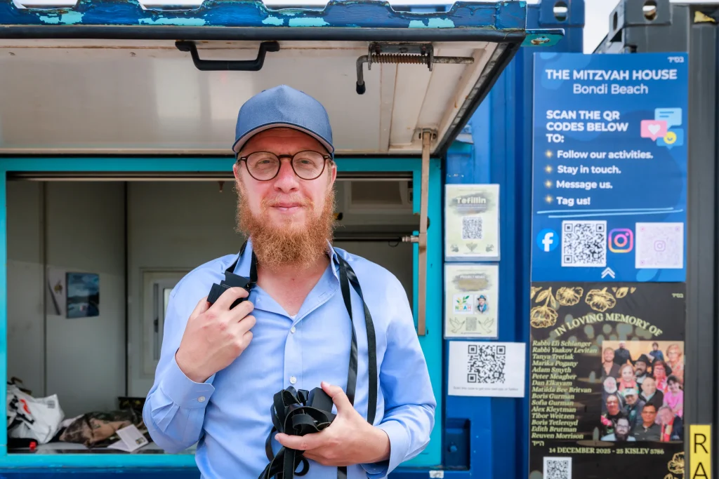 While walking near Bondi Beach, I encountered Rabbi Noach Koncepolski from the local Chabad community inviting Jewish visitors to put on tefillin. He explained that he was there in memory of those killed and wounded in the December 14, 2025 terrorist attack near Bondi Beach, when two gunmen — a father and son — opened fire during a Hanukkah gathering, killing 15 people and injuring more than 40. His presence was a quiet sign of the resilience of Sydney’s Jewish community.