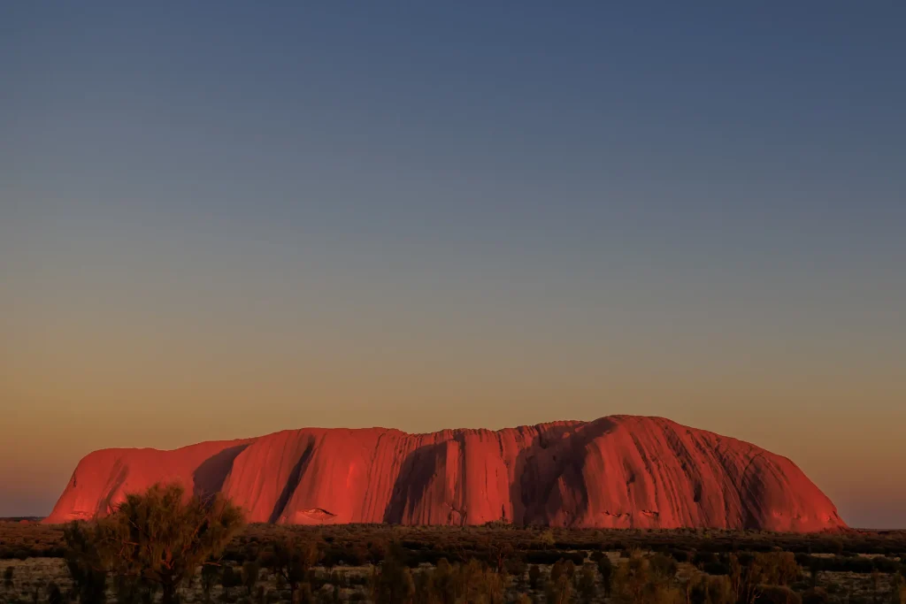 Uluru, also known as Ayers Rock, sits in the center of Australia’s Northern Territory, far from the country’s major cities. It is roughly 1,800 miles from Sydney—a reminder of how vast Australia is, and how remote this landscape remains. The flight from Sydney is about three and a half hours nonstop.