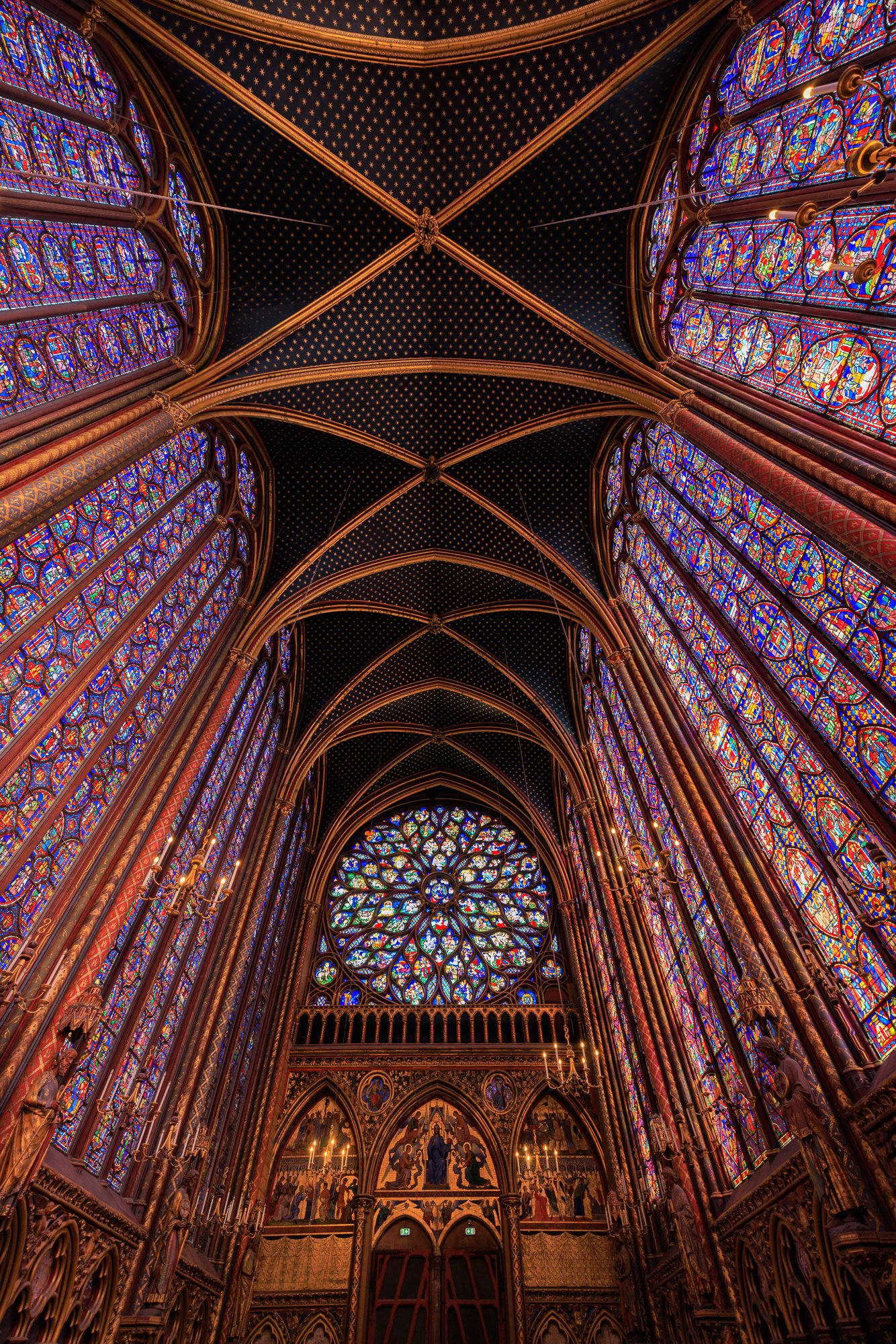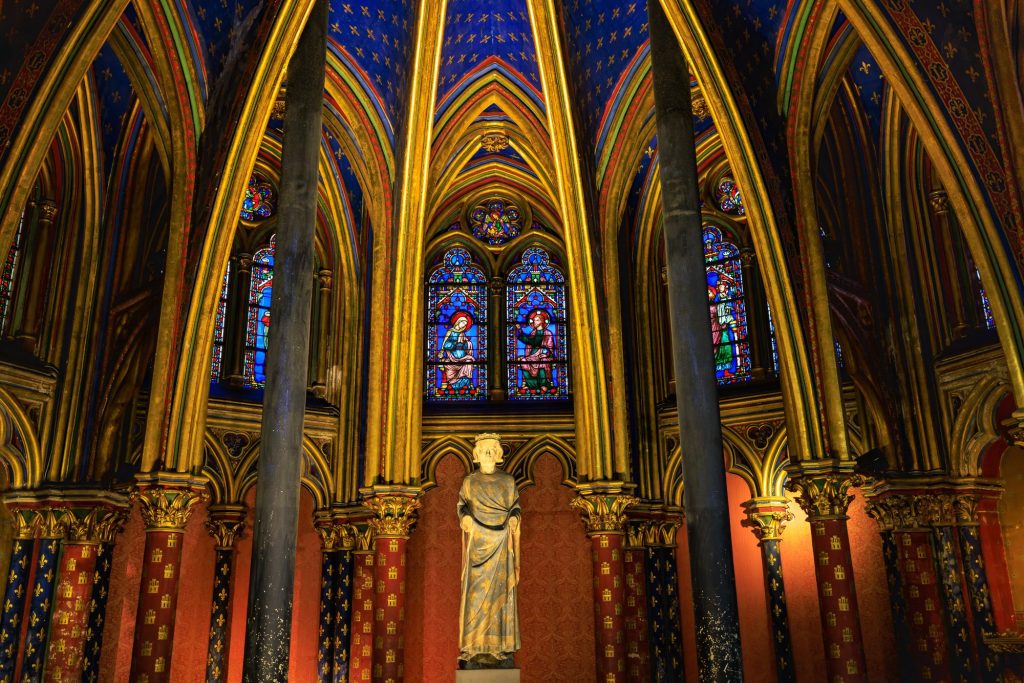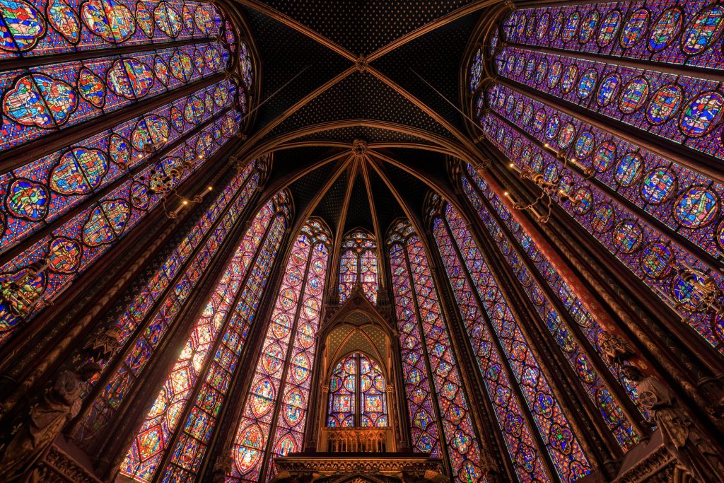The Sainte-Chapelle is the finest royal chapel to be built in France. The chapel is filled with 1,113 stained glass windows illustrating the Bible. Construction of the chapel began sometime after 1238 and it was consecrated on April 26, 1248. King Louis IX of France commissioned the chapel to house his collection of Passion relics, including Christ’s Crown of Thorns – one of the most important relics in medieval Christendom. This was later held in the nearby Notre-Dame Cathedral until the 2019 fire, which it survived.